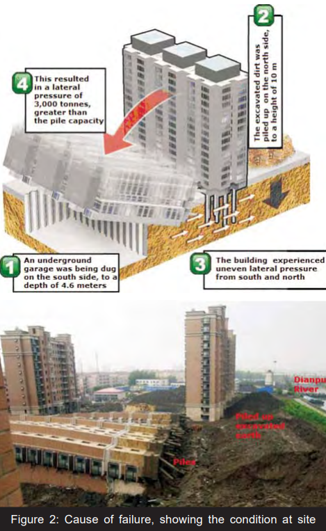 Cito: “A las 5:30 de la mañana el 27 de Junio del 2009, un edificio de 13 niveles aún en construcción… perdió su balance y terminó cayendo hacia uno de sus lados. Uno de sus trabajadores murió”. Cito también: “La agencia oficial de China reportó que las autoridades ya estaban tomando medidas contra nueve personas incluyendo el desarrollador, el constructor, el contratista y el supervisor del proyecto después de descubrir que la licencia de construcción se había vencido”.